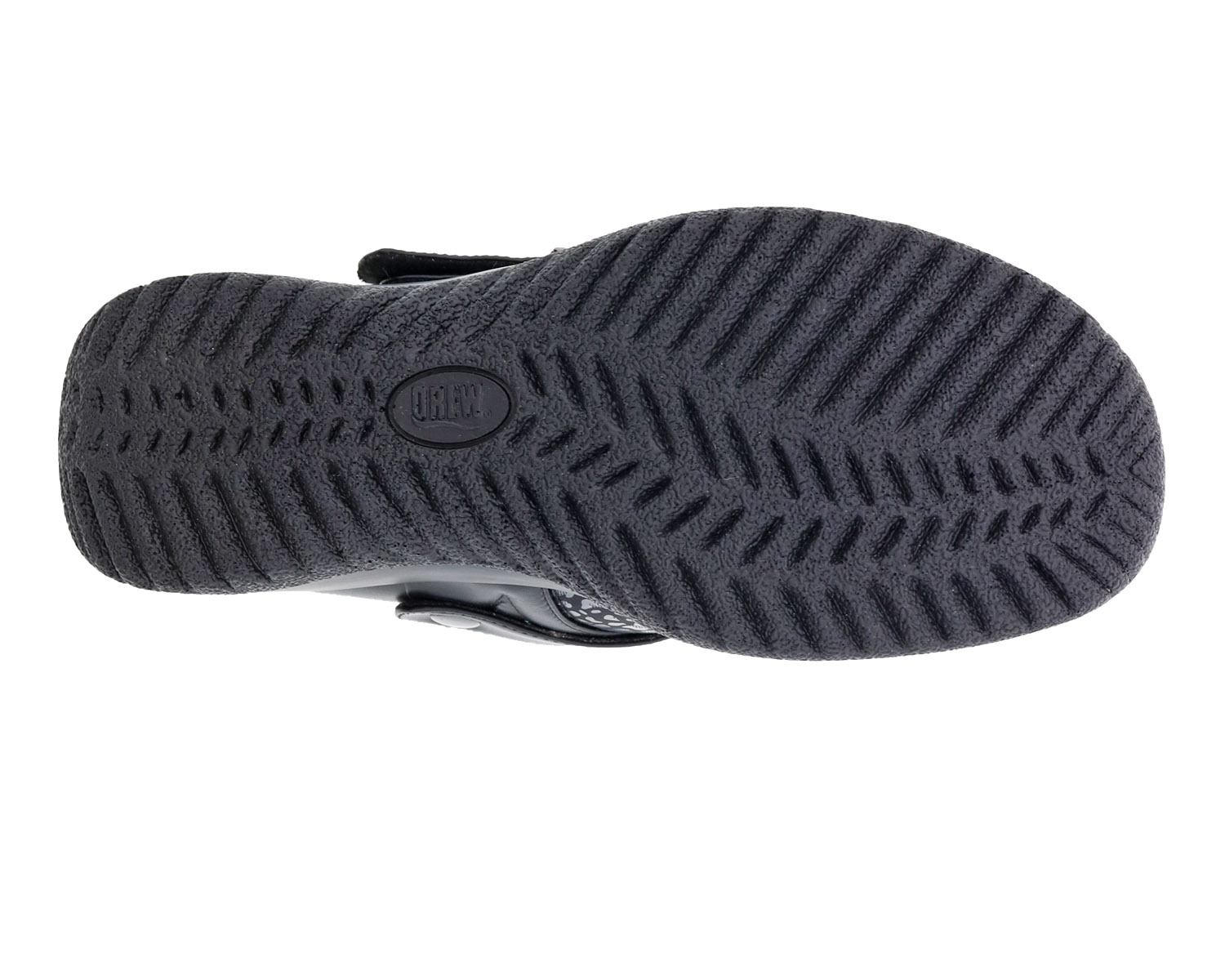 It's a classic clog with a strap that can swivel back for added control. Savannah by Drew® is loaded with padding for soft comfort, but offers enough firm support from its steel shank and wide outsole to keep you sure on your feet. Adjustable buckle closure. Fully padded, removable footbed.